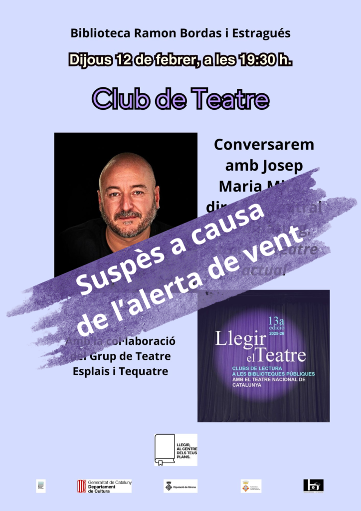 Se suspen el club de teatre de demà a causa de l’alerta de vent