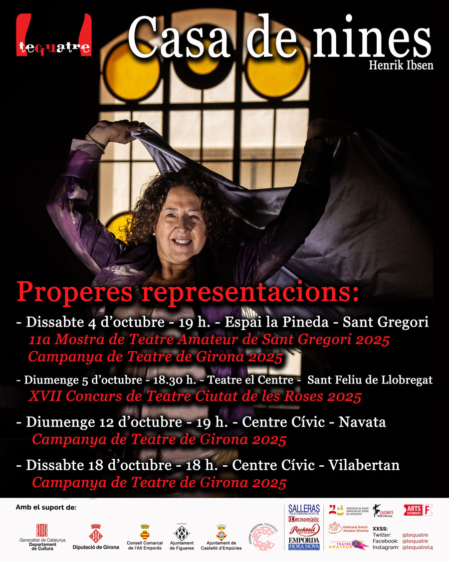 Campanya Teatre Amateur Comarques Gironines, Casa de nines, Concurs de Teatre Ciutat de les Roses, Mostra de Teatre Amateur de Sant Gregori, Tequatre