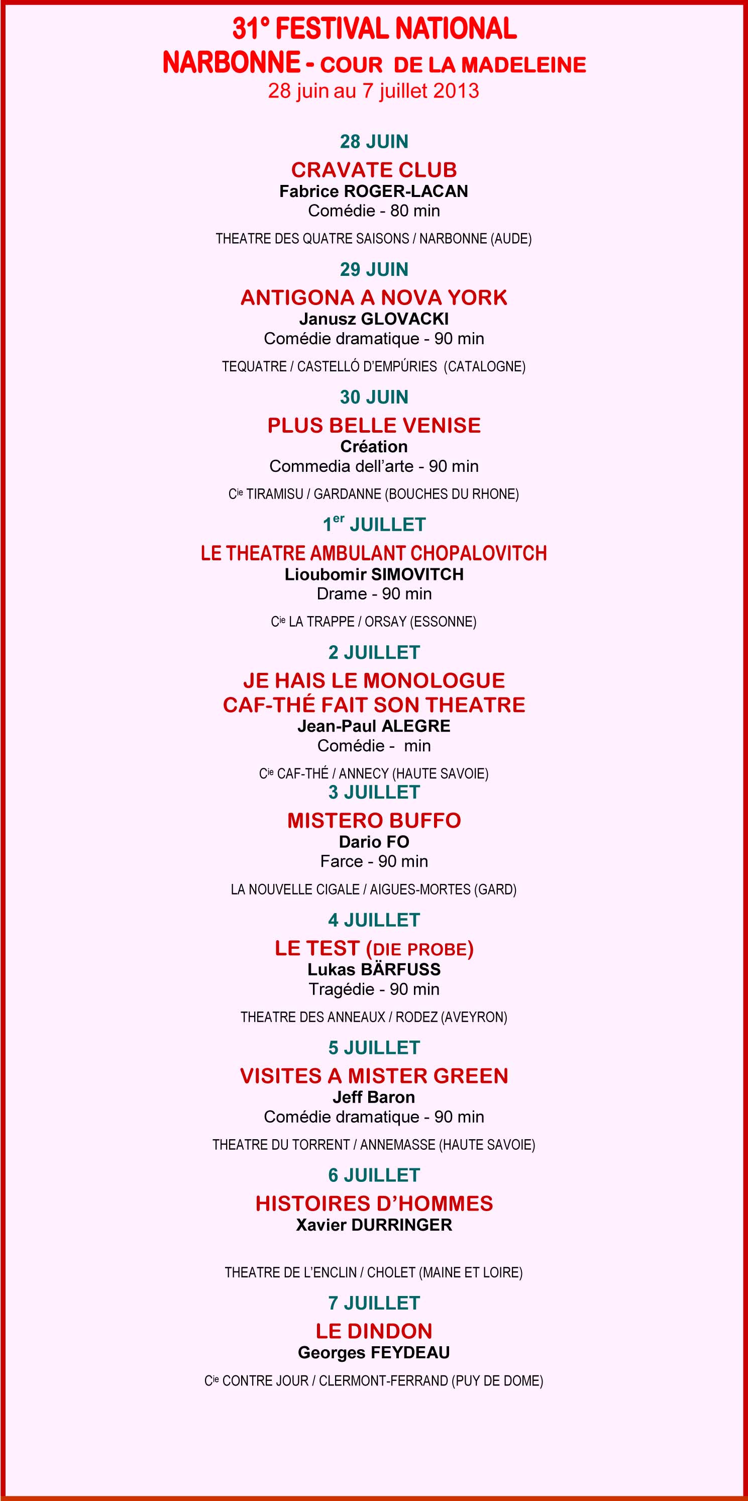 Programa oficial del 31è Festival Nacional de Narbona (29 de juny – Tequatre)